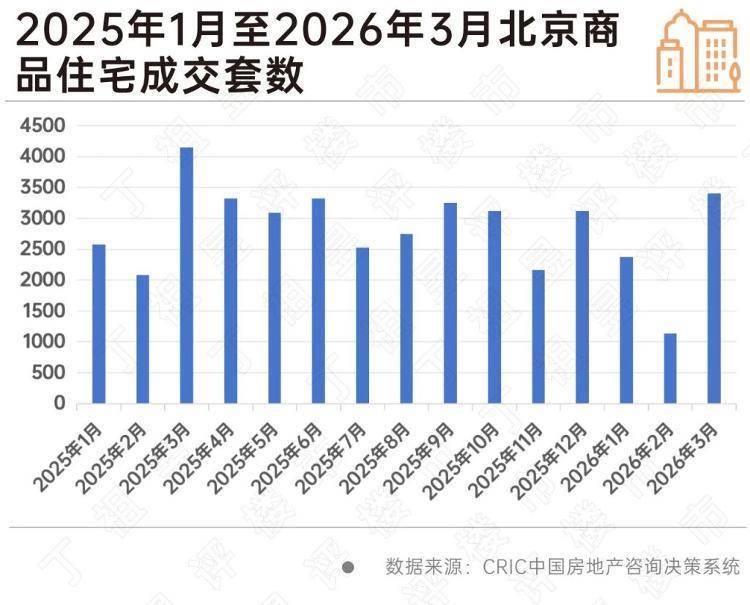 从成交来看,2026年3月北京商品住宅共成交3403套,创近一年新高,仅次于2025年3月。